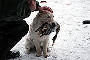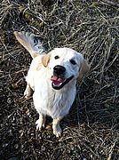 Joy im bunten Herbstwald