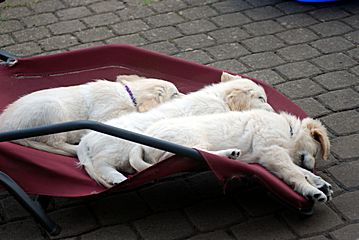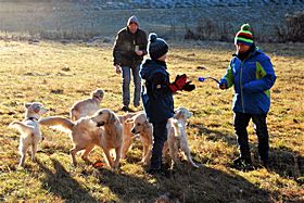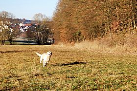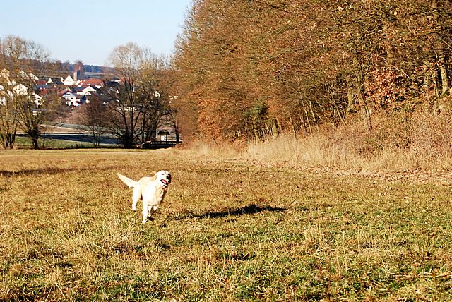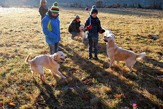 Da die Temperaturen für unsere Golden doch schon im hohen Bereich lagen (>20 Grad) wurde das zum Anlass genommen und sich ausgiebig im Welschbach abgekühlt, welcher am Sonntag aber eher ein "Matschbach" war.