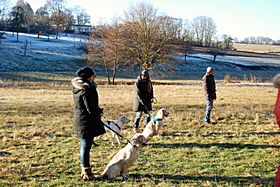 Führerin Gesine am 13. April 2014 an der Langschleppenprüfung auf 800 Meter des Jagdgebrauchshundevereins